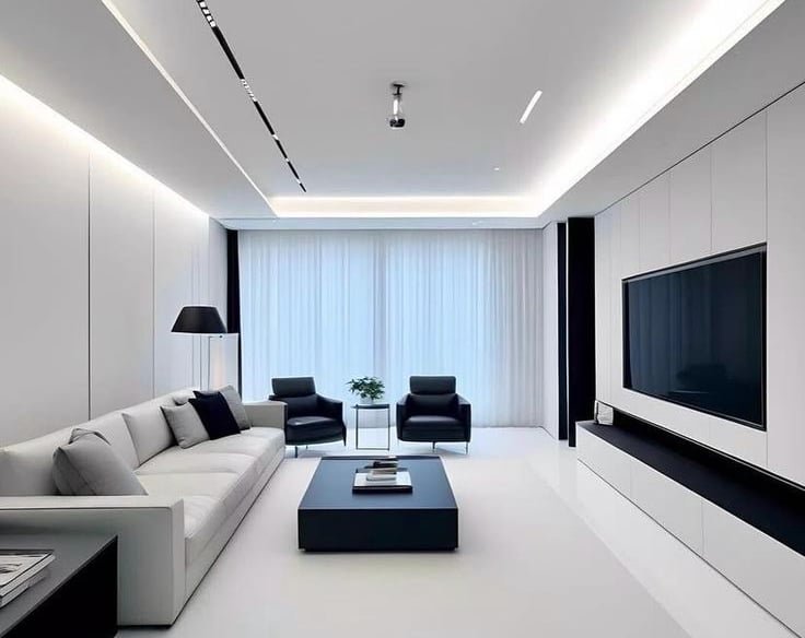 We use high-quality POP, gypsum boards, PVC materials, and modern lighting fixtures.